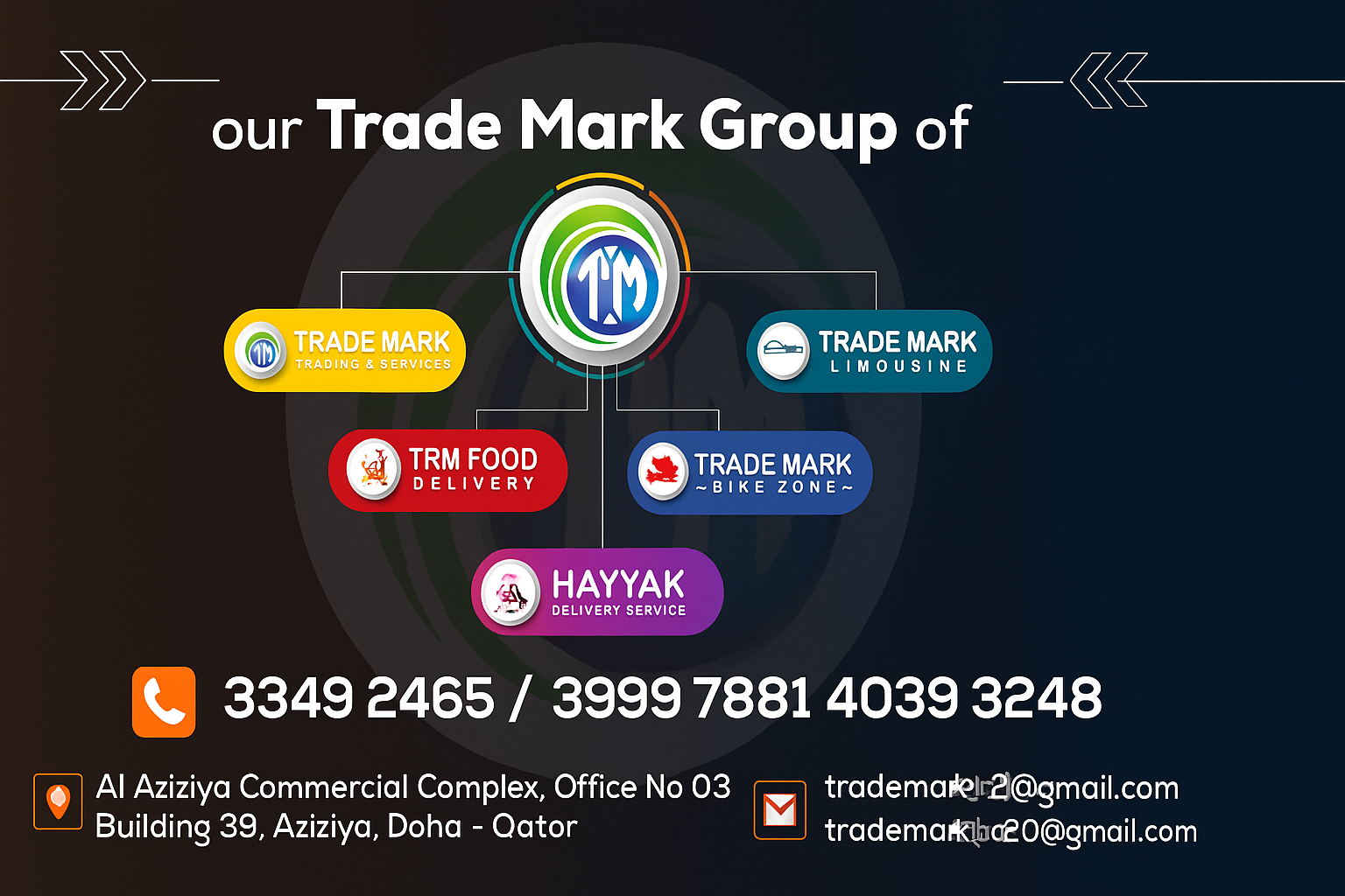 Trade Mark Group, headquartered in Doha, Qatar, is a premier service provider committed to delivering comprehensive solutions tailored to the diverse requirements of businesses and individuals across various industries. Our expertise encompasses dependable manpower services, efficient import-export management, luxury limousine rentals, premium food delivery, bespoke apparel, and exceptional hospitality services.